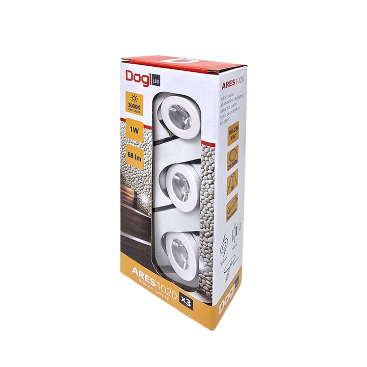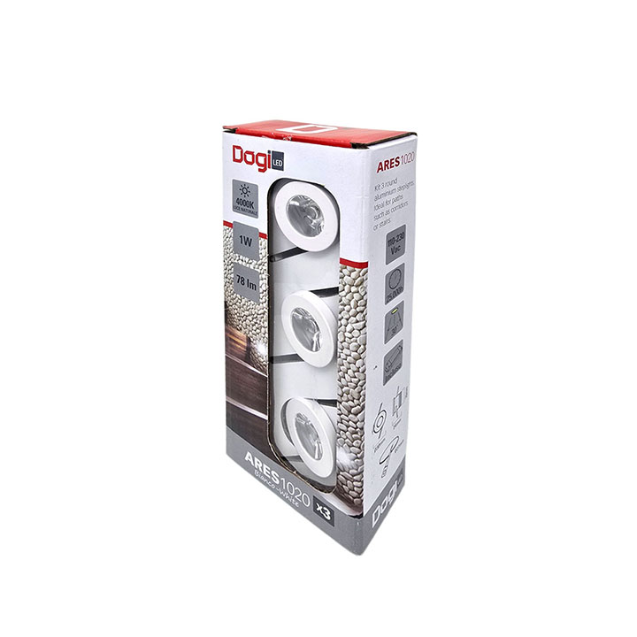 | AR1020SETWN40 | Segnapasso tondo bianco 1x1W, LN, 30°, 230Vac, IP20, Set 3 pz |