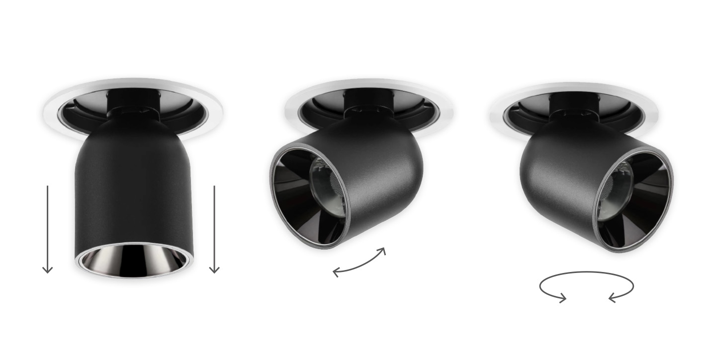 ZENO NECK: FARETTO DA INCASSO CCT ROTONDO ORIENTABILE ED ESTRAIBILE