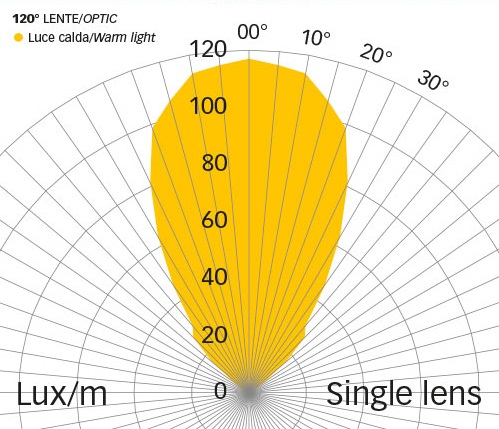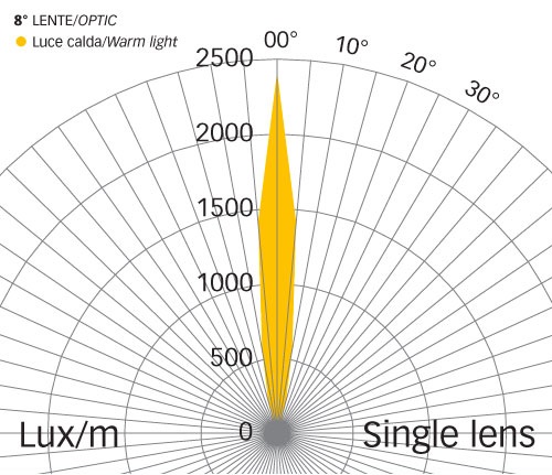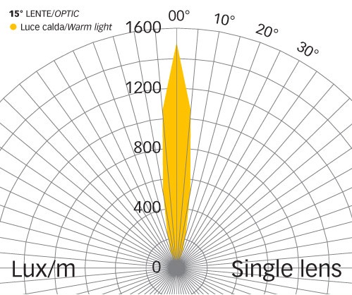 | Finitura | Alimentatore input | Numero Led | Colore luce | Gradi lente | Lumen | Watt | Grado IP | |