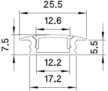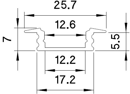 PRF005/300 Profilo ad incasso 17,5x8mm c/flange (barra da 3m)