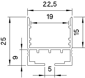 Profilo in alluminio estruso anodizzato da incasso.