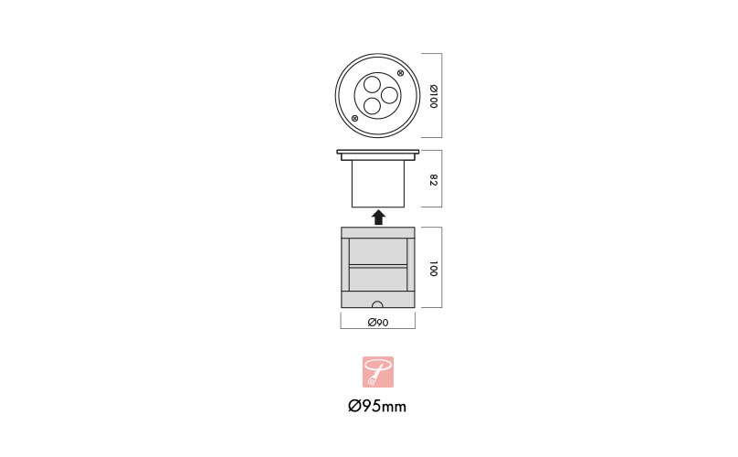 Faro da incasso terra carrabile, corpo in alluminio pressofuso, frontale in acciaio inox AISI304. Potenza totale LED 3W. Ideale per illuminare facciate di edifici, monumenti, viali alberati.